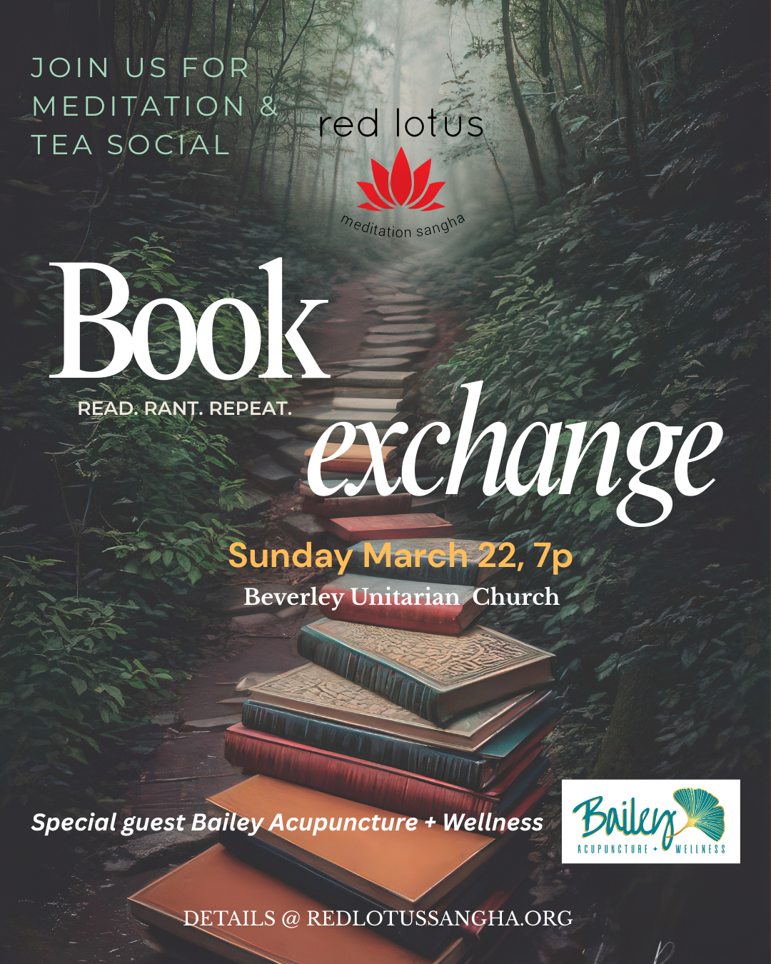 Meditation Tea and Book Exchange Social- Sunday 7p March 22nd, 2026